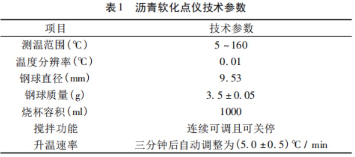 1. 1 儀器選用的是上海昌吉地質儀器有限公司生產的SYD - 2806G 型全自動瀝青軟化點試驗器,其各項指標如表 1。